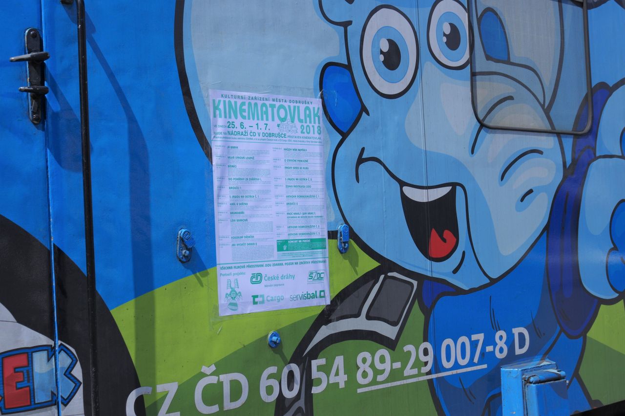 Tradiční promítání filmů ve speciálním vagónu Českých drah, národního dopravce se na dobrušském vlakovém nádraží uskutečnilo letos v týdnu od pondělí 25. června až do neděle 1. července 2018. Návštěvníci kina kolejích mohli zdarma shlédnout 21 filmových představení pro všechny věkové kategorie. Navíc se hrálo rovněž dopoledne pro školy. Týdenní provoz kinematovlaku se uskutečnil za přispění Českých drah, národního dopravce, ČD Carga, Správy železniční dopravní cesty, dobrušské firmy Servisbal Obaly a města Dobrušky.