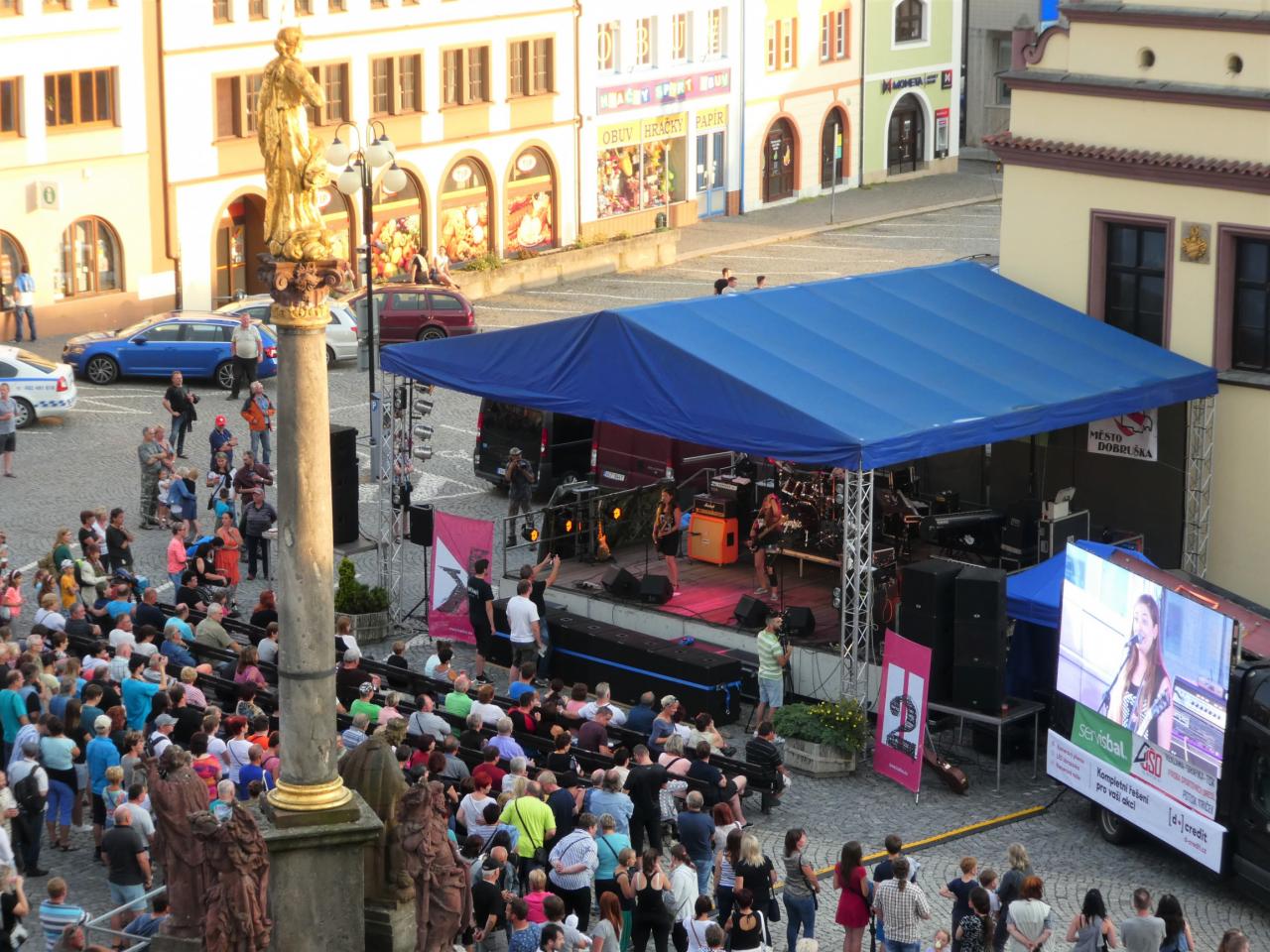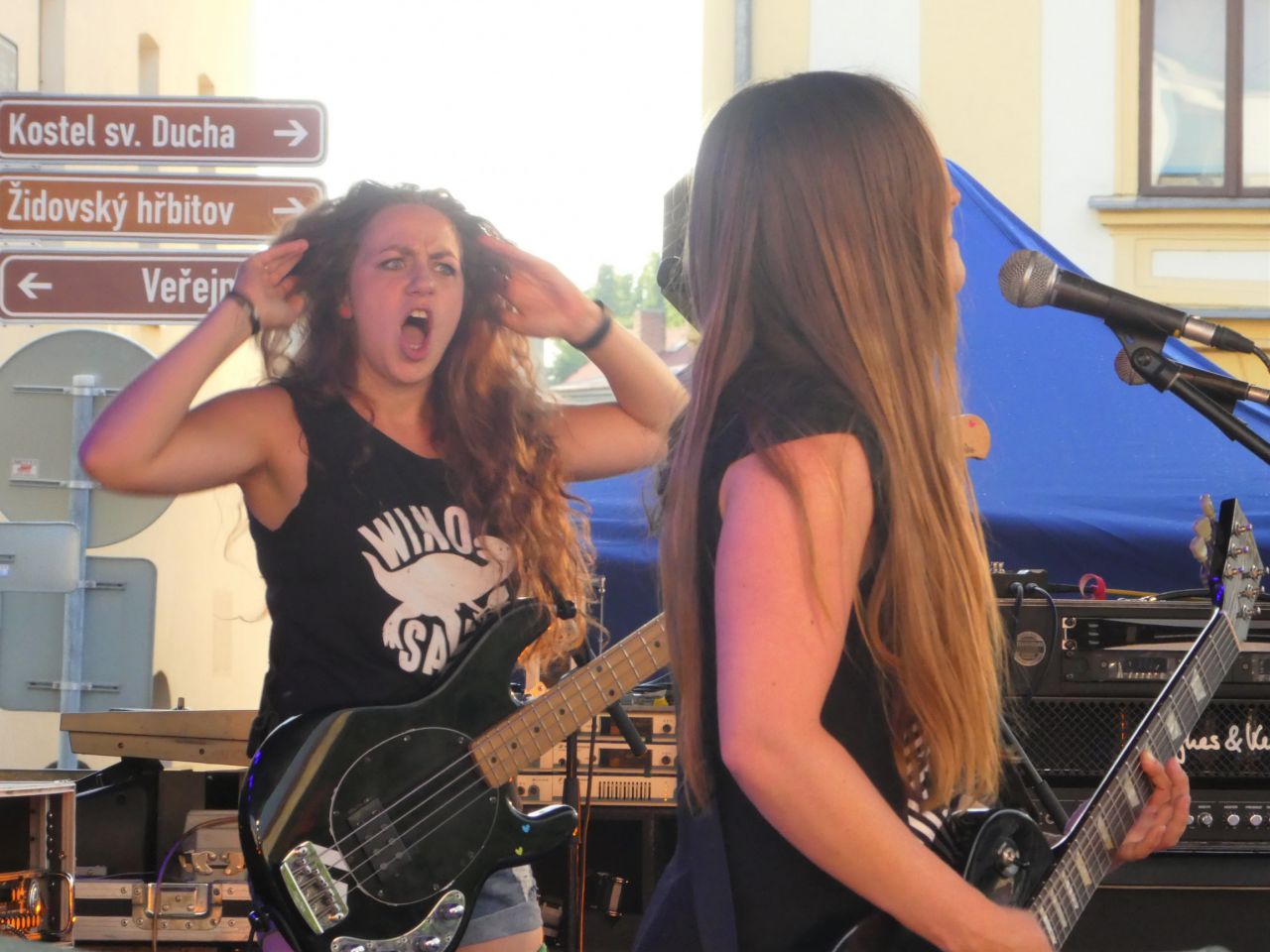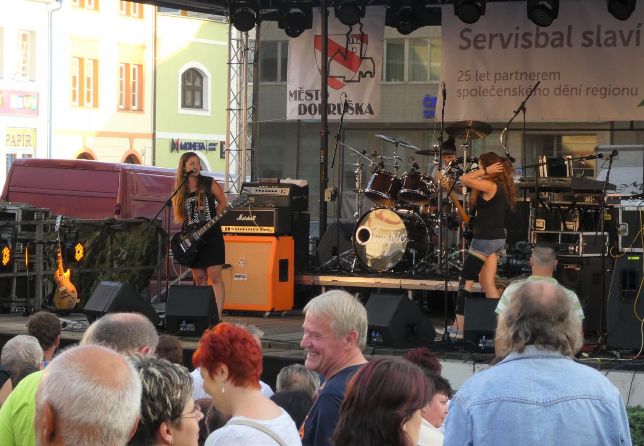 Dívčí pop-rocková kapela K2 na dobrušském náměstí.