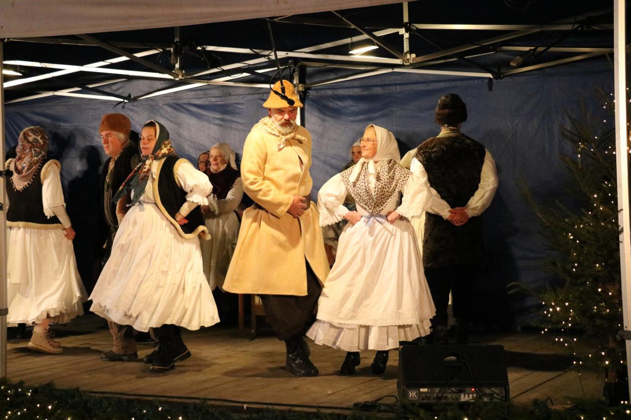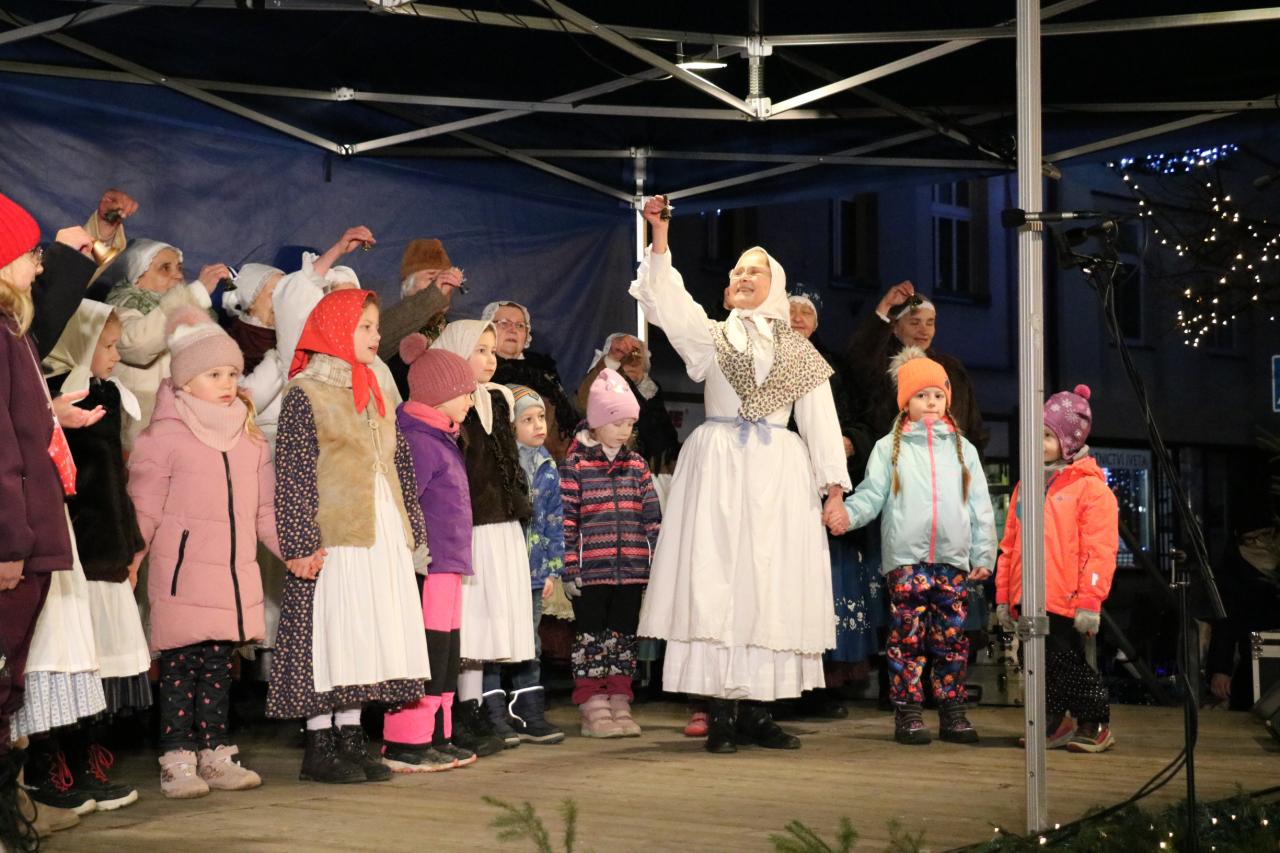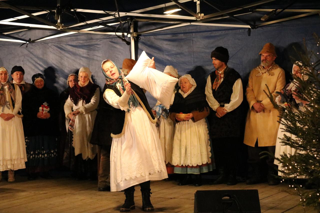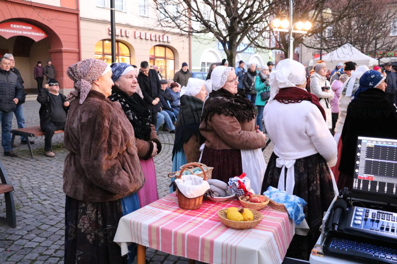Živý betlém v podání folklorního souboru Barunka Česká Skalice dal podvečeru čtvrté adventní neděle na náměstí F. L. Věka vánoční náladu. Hudebně taneční pásmo, které nabídlo divákům tance a koledy, vyvrcholilo živým betlémem.