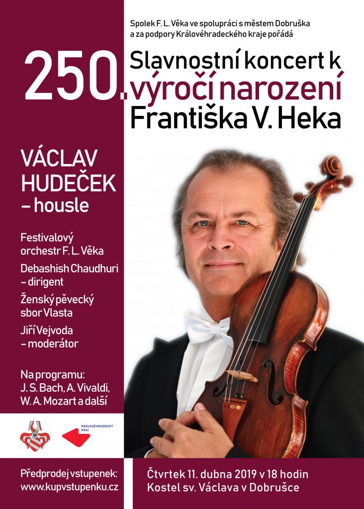 Vystoupí špičkoví umělci - Václav Hudeček (housle), Pavel Svoboda (varhany), Festivalový orchestr F. L. Věka a Debashish Chaudhuri (dirigent), Ženský pěvecký sbor Vlasta, Jiří Vejvoda - moderátor.Program koncertu zahrnuje díla F. V. Heka, J. S. Bacha, A. Vivaldiho, W. A. Mozarta a A. Dvořáka a mimo jiné na něm zazní málokdy uváděná skladba Missa Pastoralis "oslavence" Františka Vladislava Heka.