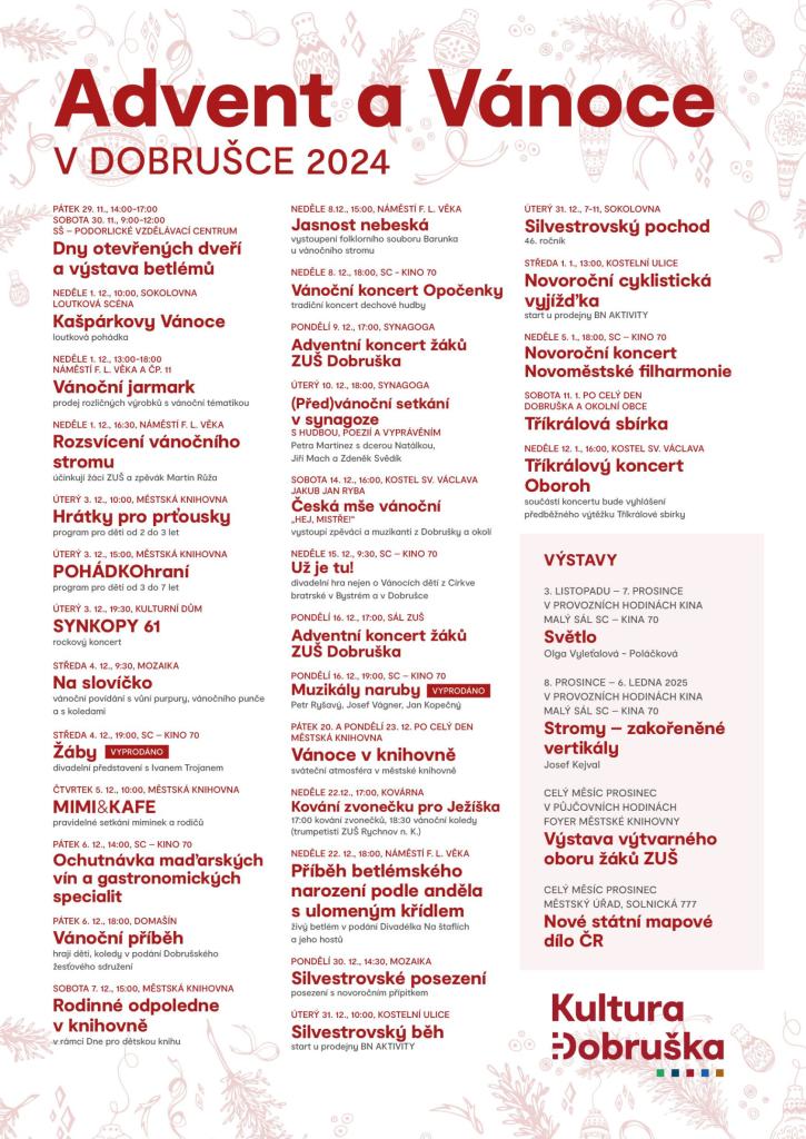 Podrobný přehled adventních akcí v Dobrušce a v okolních obcích.