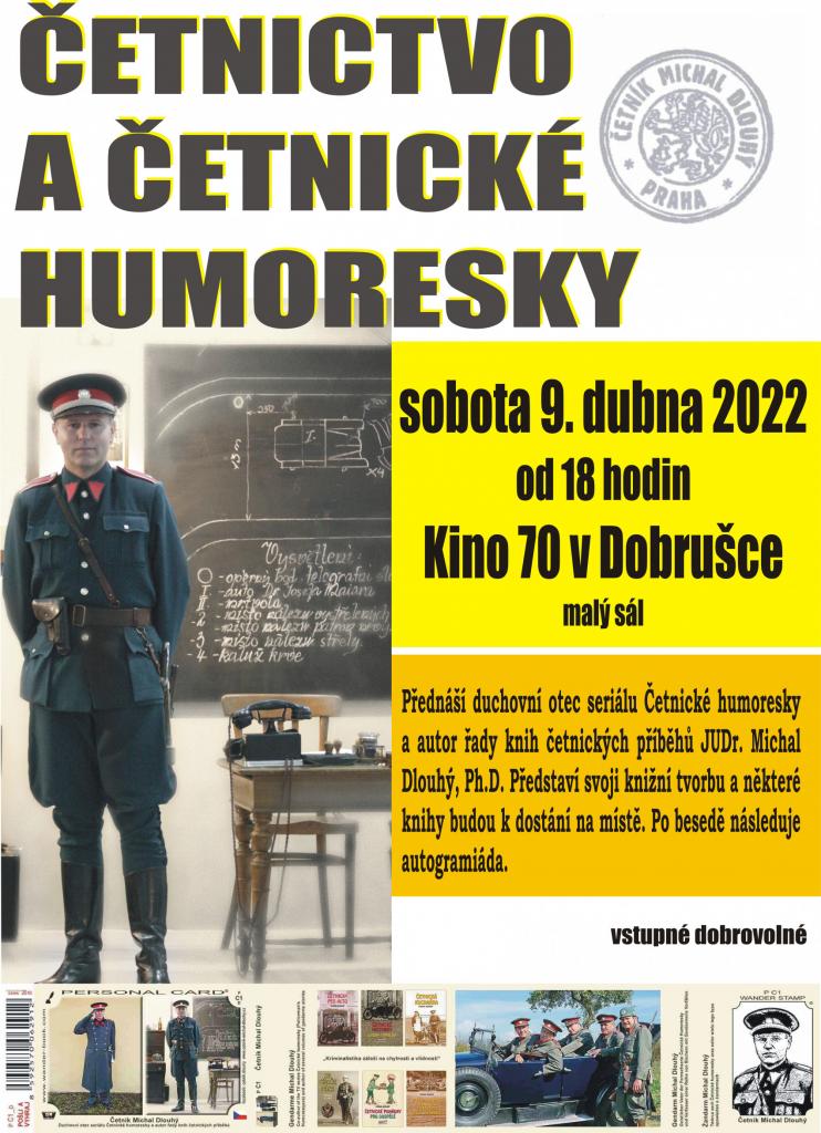 Besedu povede v dobové četnické uniformě a bude se v ní věnovat téměř stoleté historii četnictva na našem území a natáčení slavného seriálu. V poslední části představí svoji knižní tvorbu a některé knihy budou k dostání na  místě, stejně tak jako originální razítko a osobní turistické vizitky. Po besedě následuje autogramiáda. Vstupné dobrovolné.
