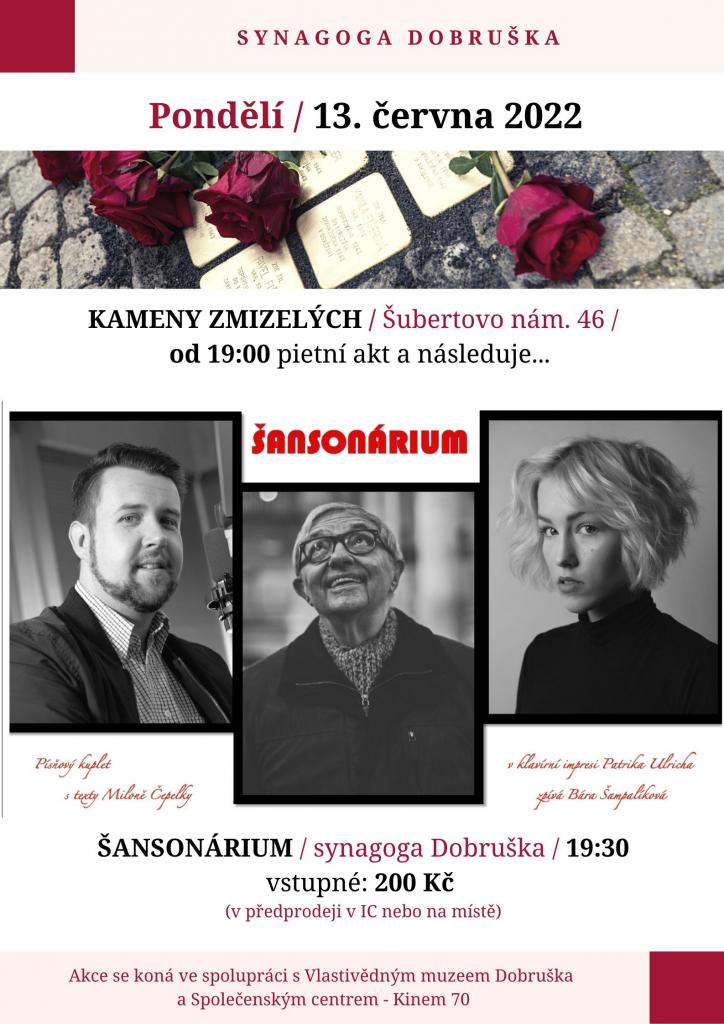 od 19 hodin pietní akt na Šubertově náměstí a následuje ŠANSONÁRIUM - písňový kuplet s texty Miloně Čepelky v klavírní impresi Patrika Ulricha a zpěvu Báry Šampalíkové