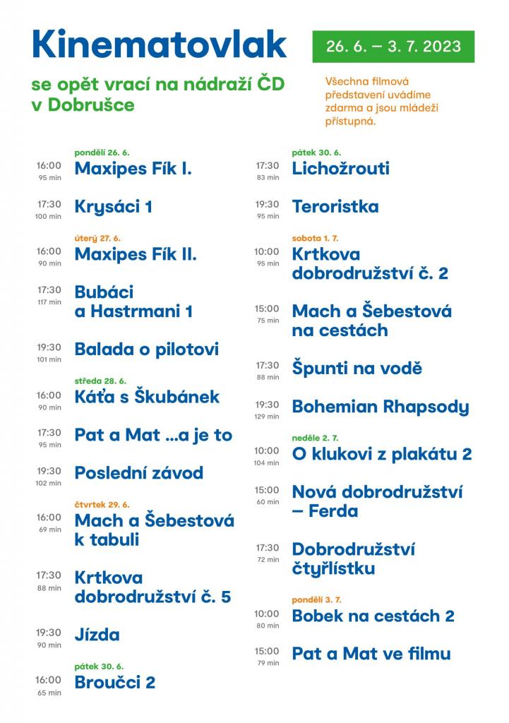 KINEMATOVLAK - kino na kolejích, vstupné zdarma.