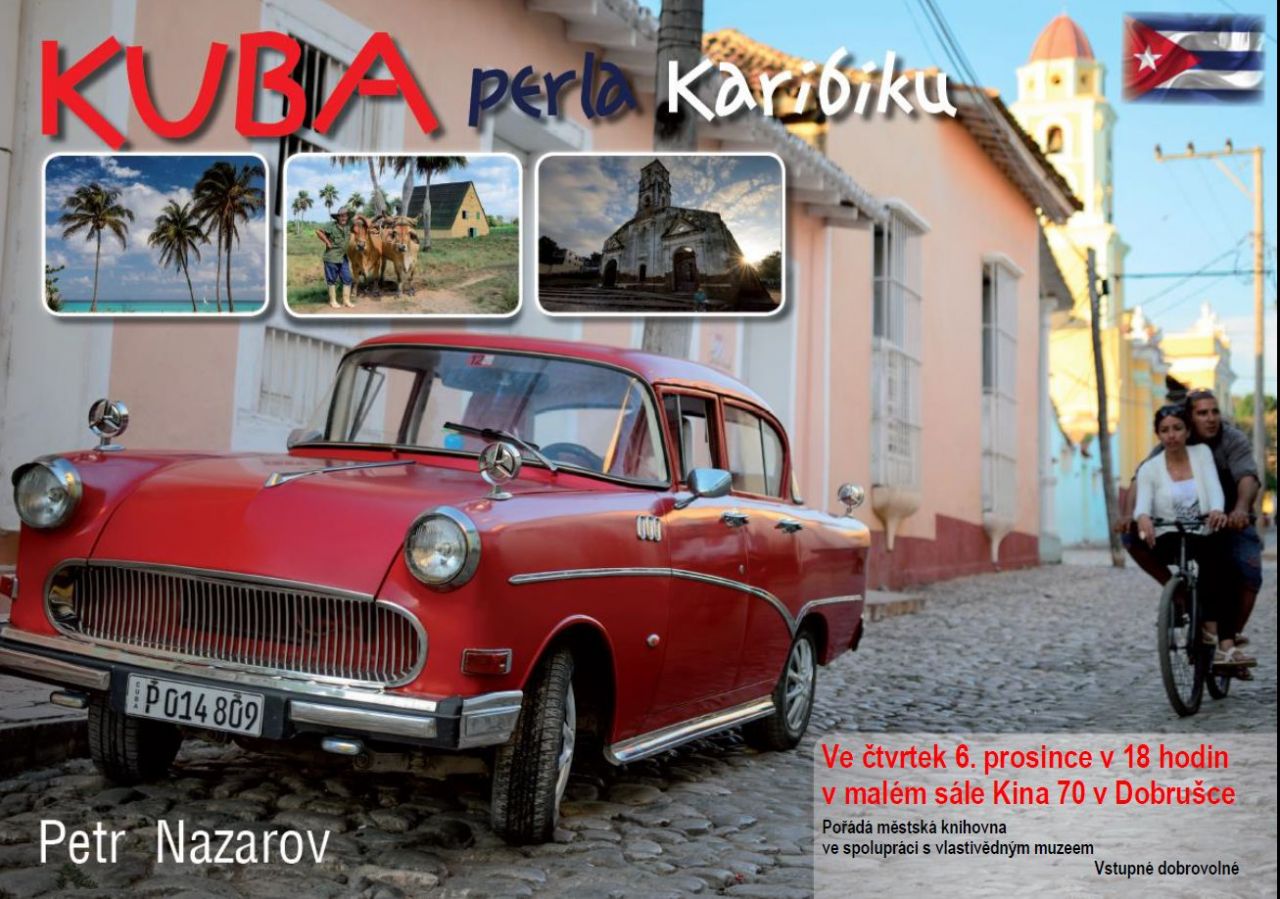 V samém srdci Karibského moře, tam kde se nacházejí ty nejkrásnější pláže a letoviska, tam kde se kouří ty nejlepší doutníky, leží země s bohatou a pohnutou historií. Kuba je žhavý a pulzující karibský ráj plný latinských rytmů, doutníků, rumu a krásných žen. Je to země kontrastů a barev. Přednáší Petr Nazarov.