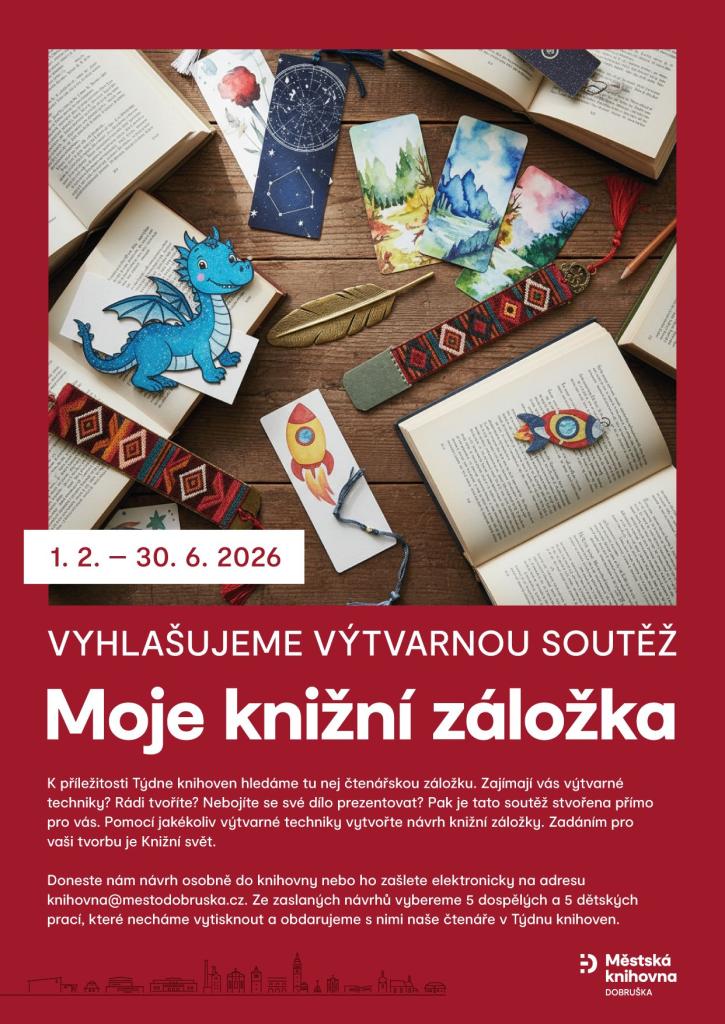 Doneste nám návrh osobně do knihovny nebo ho zašlete elektronicky na adresu knihovna@mestodobruska.cz. Ze zaslaných návrhů vybereme 5 dospělých a 5 dětských prací, které necháme vytisknout a obdarujeme s nimi naše čtenáře v Týdnu knihoven.