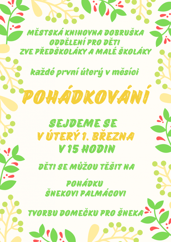 každé první úterý v měsíci, pro předškoláky a malé školáky, děti se můžou těšit na POHÁDKU O ŠNEKOVI PALMÁCOVI
