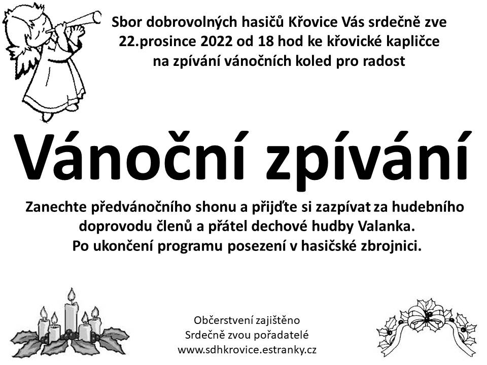 Zanechte shonu a přijďte si zazpívat za hudebního doprovodu členů a přátel dechové hudby Valanka. Po ukončení programu posezení v hasičské zbrojnici.