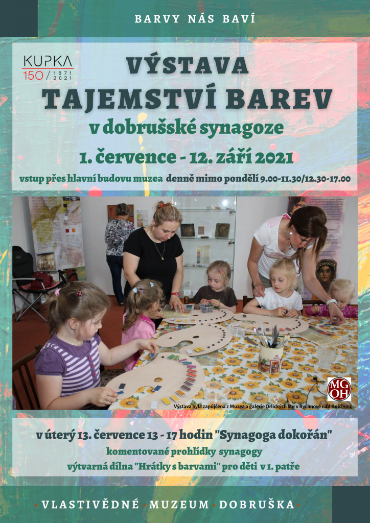 Výstava tajemství barev v dobrušské synagoze. Vstup přes hlavní budovu muzea denně mimo pondělí 9.00-11.30 a 12.30-17.00