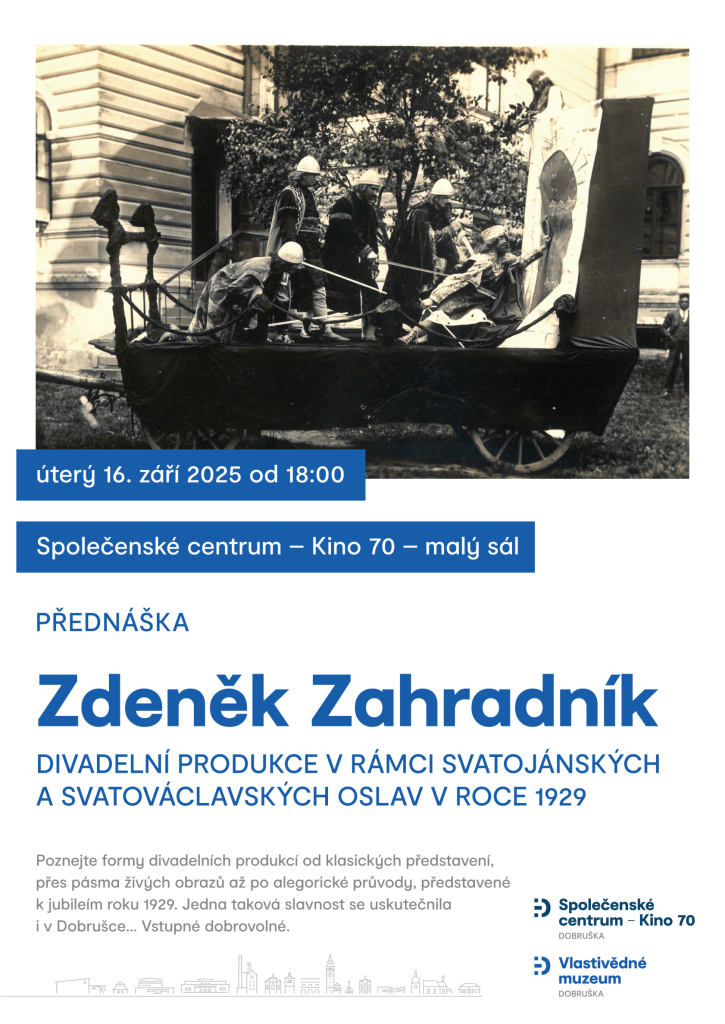 Poznejte formy divadelních produkcí od klasických představení, přes pásma živých obrazů až po alegorické průvody, představené k jubileím roku 1929. Jedna taková slavnost se uskutečnila i v Dobrušce .....
